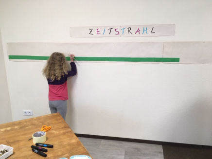 Die Schüler:innen bringen ihre Themen, die sie in der Zeit der digitalen Treffen im Homeschooling mit den Lernbegleiter:innen gestaltet haben, mit in die Schule und entwickeln diese hier weiter.