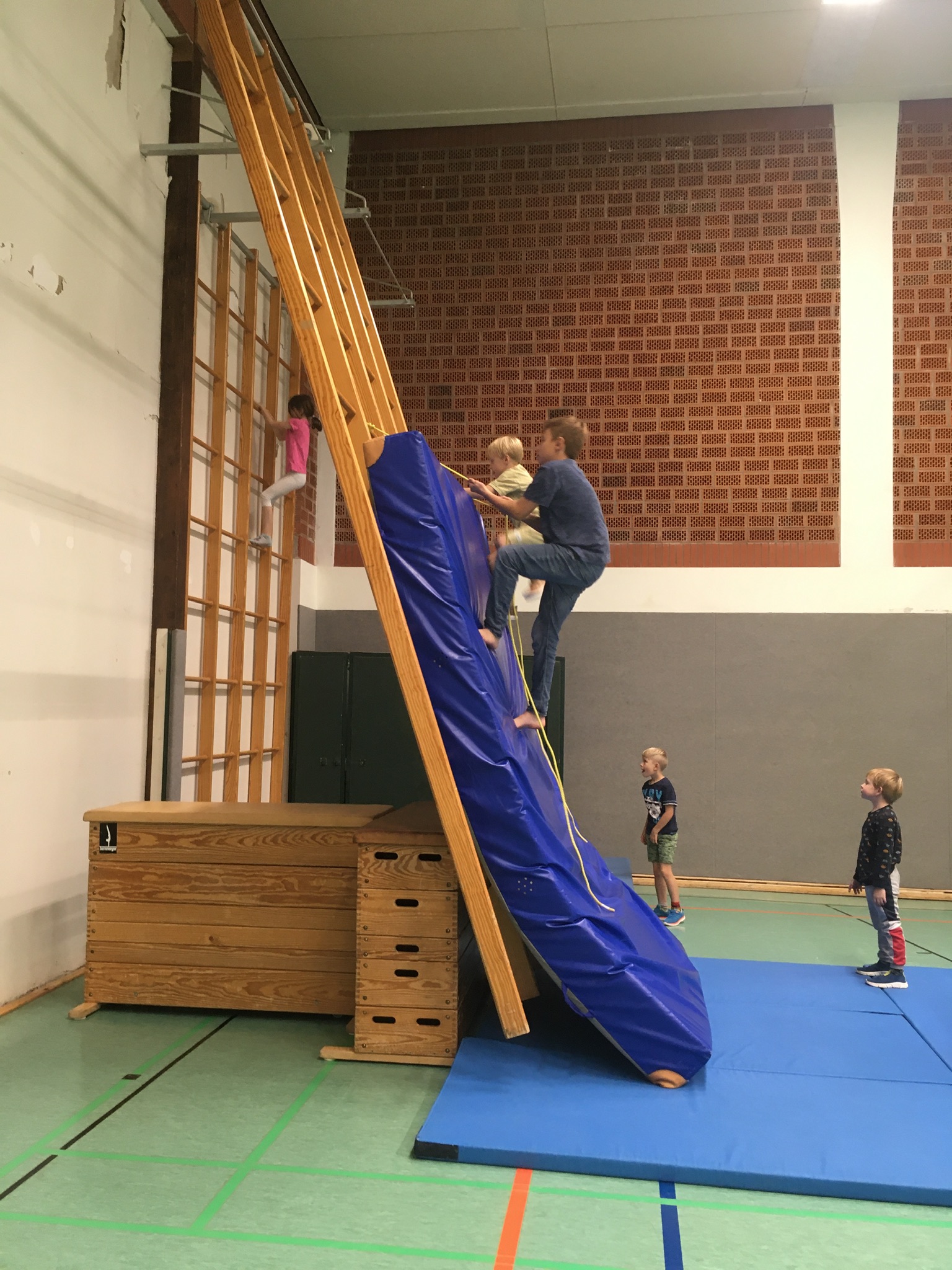 Beim Sport trauen sich die Grundschüler*innen immer mehr zu. Schon Tage vorher planen auch jüngere Schüler*innen den Sport mit. Neue Gruppenspiele werden erfunden und der Gruppe vorgestellt, die Geräte in ihrer Vielfältigkeit ausprobiert und kennengelernt. Durch von den Lernbegleiter*innen neu installierte Kooperationsspiele konnte die Gruppe zeigen, wie viel Teamgeist in ihr steckt und bemerken, wie wichtig es sein kann, gemeinsam an einem Strang zu ziehen.