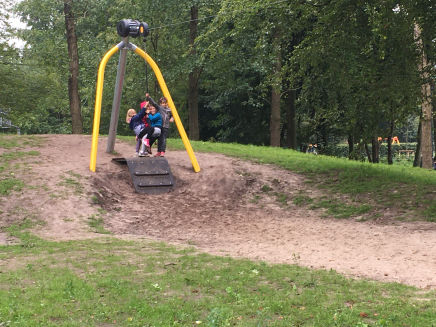 Immer intensiver werden die Spielgeräte auf dem neuen Campus von den Schüler:innen genutzt. Täglich wird die Spitze der Kletterspinne erklommen, die Seilbahn hinunter gefahren oder auf dem neuen Platz Fußball gespielt. Auf der frisch angelegten Wildblumenwiese gibt es zudem viele Insekten zu beobachten.