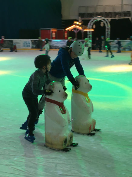 Für einige ist das eine besondere Herausforderung. Das Gleichgewicht auf zwei schmalen Kufen zu halten, ist nicht immer ganz einfach. Zum Glück gibt es vor Ort kleine Helfer.