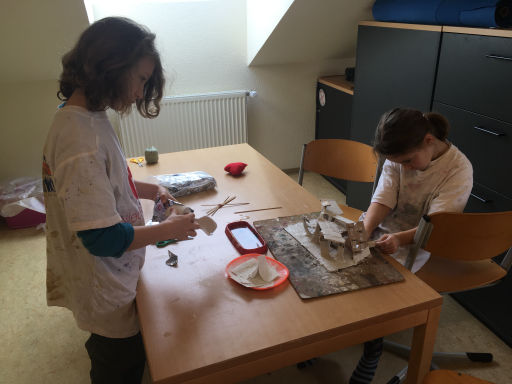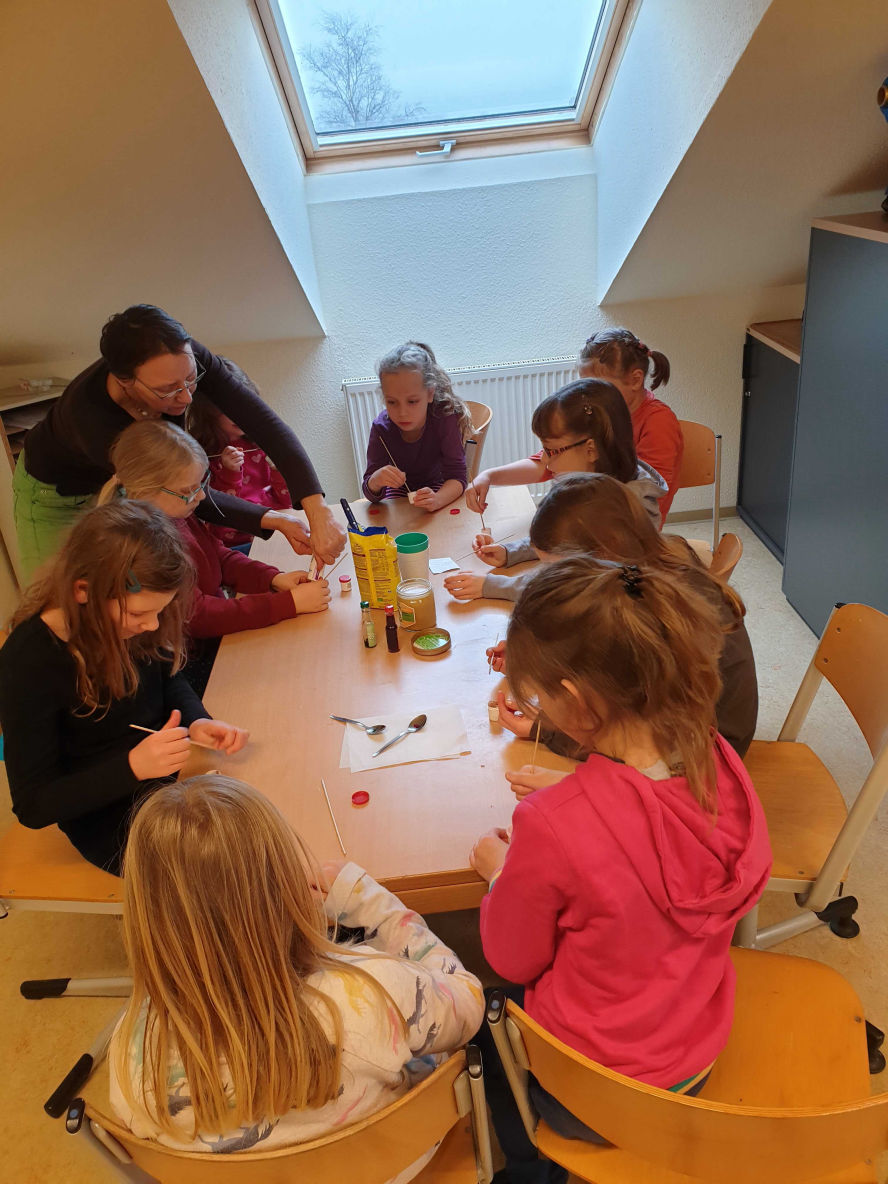 Die Kreativität der Schüler:innen kennt keine Grenzen. Sie probieren alles aus und nehmen kleine Missgeschicke mit einem lachendem und einem weinenden Auge hin. Sei es bei der Herstellung von Salben, beim Basteln von Puppen aus Gips oder beim Bau einer Achterbahn.